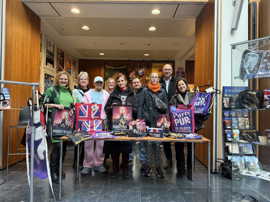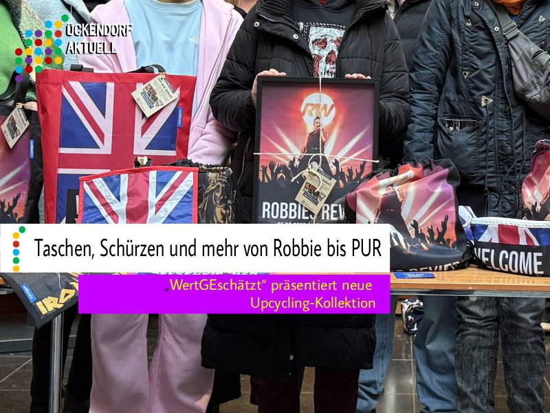 Seit heute sind die Upcyclingprodukte rund um die Konzerte von Robbie Williams, Bruce Springsteen, Iron Maiden und PUR an der Stadt- und Touristinfo im Hans-Sachs-Haus erhältlich. Unter dem etablierten Upcyclinglabel „WertGEschätzt“ haben die Beschäftigten der Kooperationspartner Werkstätten Sozialwerk St. Georg, Begegnungsstätte Haverkamp, Gelsenkirchener Werkstätten für angepasste Arbeit gGmbH und Caritas Herne e.V Fahnen, Bannern, Wimpelketten und Co. neues Leben eingehaucht und trendige Produkte erstellt.