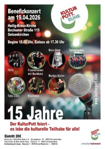 Anlässlich seines 15-jährigen Bestehens lädt der KulturPott.Ruhr e. V. zu einem festlichen Benefizkonzert ein. Die Veranstaltung findet am 19. April 2026 in der Heilig-Kreuz-Kirche in Gelsenkirchen Ückendorf statt und steht ganz im Zeichen der kulturellen Teilhabe für alle.