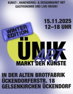 Wenn sich das Jahr dem Ende zuneigt und die Luft nach Winter duftet, wird es wieder kreativ in Gelsenkirchen: Der ÜnikArt – Markt der Künste feiert seine Winteredition und verwandelt am 15. November 2025 die Alte Brotfabrik Gelsenkirchen in ein leuchtendes Zentrum für Kunst, Design und handgemachte Unikate.