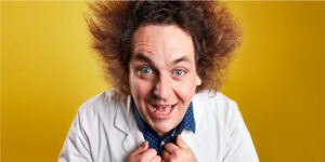 Der quirlige Wissenschafts-Comedian mit der markanten Albert-Einstein-Frisur, Konrad Stöckel, bekannt aus zahlreichen TV- und Liveshows – u. a. SAT.1 „Luke! Die Schule und ich“ mit Luke Mockridge, „Immer wieder sonntags“ (ARD) und dem „3sat Festival“ – begeistert das Publikum in seinem neuen Programm mit einem krachenden Feuerwerk aus spektakulären Live-Experimenten für die ganze Familie.