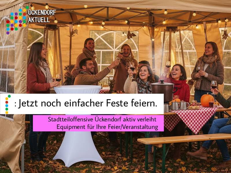 Die Stadtteiloffensive Ückendorf aktiv stärkt das nachbarschaftliche Miteinander und erleichtert die Organisation von Stadtteil- und Gemeinschaftsveranstaltungen. Ab sofort stellt die Initiative Bürgerinnen, Bürgern, Vereinen und Gruppen eine breite Palette an Ausstattung und Material zur Verfügung, um Feste jeder Größe erfolgreich durchzuführen.