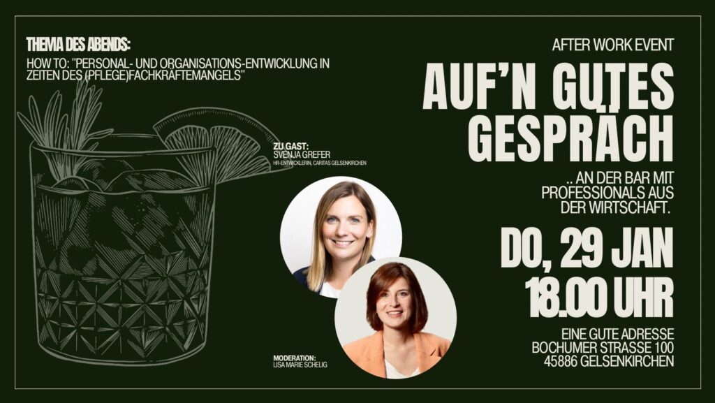 Dieses Mal begrüßt sie Svenja Grefer, Personalentwicklerin bei der Caritas Gelsenkirchen . Gemeinsam sprechen die beiden über Themen wie berufliche Entwicklung, Motivation und die Bedeutung menschlicher Begegnung im Arbeitsalltag. Ein Gespräch, das Impulse geben, Mut machen und zum Nachdenken anregen soll – ganz im Sinne des Formats: ehrlich, nahbar und lebendig.