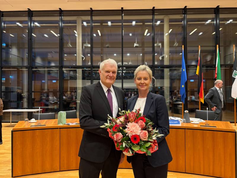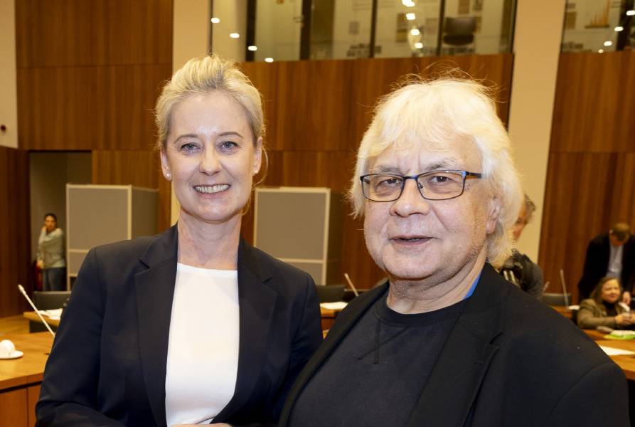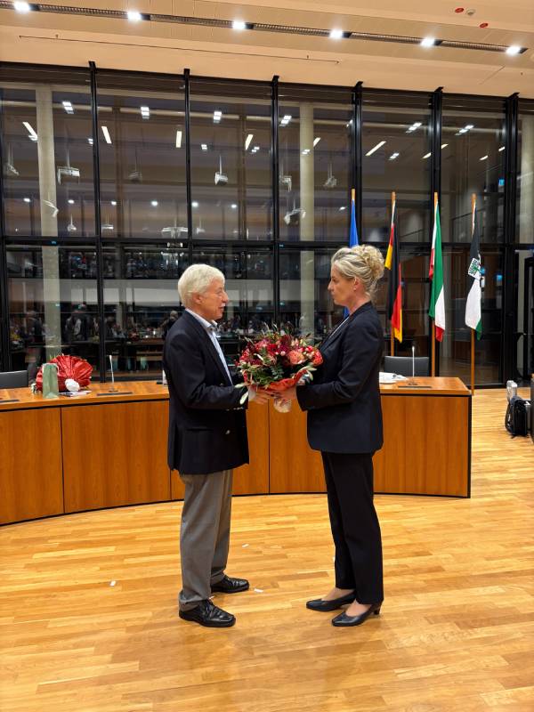 Die neue Oberbürgermeisterin bedankte sich für diesen sehr besonderen Moment bei Peter Tertocha und übernahm dann die Leitung der Ratssitzung und die Verpflichtung der Ratsmitglieder in feierlicher Form zur gesetzmäßigen und gewissenhaften Wahrnehmung ihrer Aufgaben.
