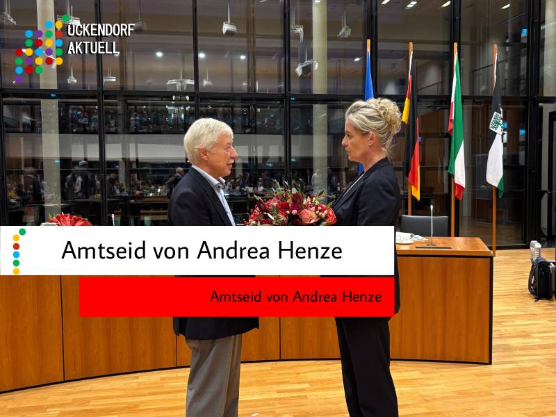 Er übernahm damit auch die Vereidigung der neuen Oberbürgermeisterin Andrea Henze (SPD) sowie deren Einführung in das Amt, bei der die Oberbürgermeisterin die folgende Amtsformel sprach: „Ich schwöre, dass ich das mir übertragene Amt nach bestem Wissen und Können verwalten, Verfassung und Gesetze befolgen und verteidigen, meine Pflichten gewissenhaft erfüllen und Gerechtigkeit gegen jedermann üben werde. So wahr mir Gott helfe“