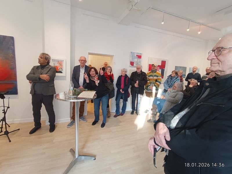 Nach einer herzlichen Begrüßung durch Gordana Djukic, die die Ausstellung offiziell eröffnete, führte der Kunsthistoriker Dr. Bernd A. Gülker in die Werke ein. In seiner Rede betonte er die Bedeutung der künstlerischen Zusammenarbeit zwischen den Städten Herne und Gelsenkirchen und zeigte sich erfreut über die neu entstehende Verbindung zwischen beiden Künstlerbünden.